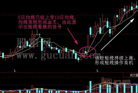 5日均線和10日均線的交叉對于短線操作具有很重要的參考價值,其表現(xiàn)在以下兩個方面:
