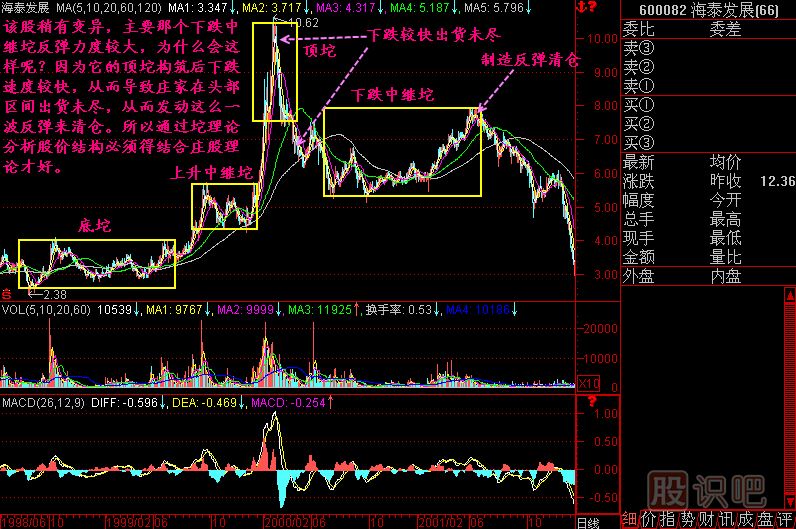 比如有的股票由于頂部停留時間極短,那頂坨就可能相當(dāng)小,這樣的話當(dāng)股價跌到下跌中繼坨附近時,莊家還未清倉,那就可能爆發(fā)一個反彈力量稍大的下跌中繼坨,所以這個時候你就明白了,哦,原來一切都是為了莊家操盤的需要啊。
