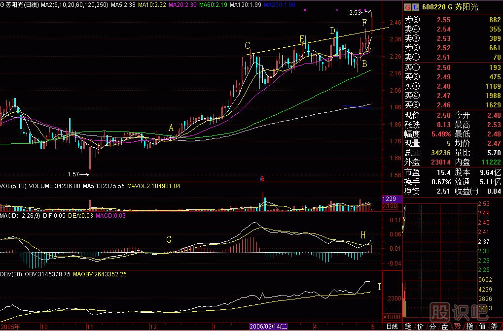 一般說,突破鴨“頭頂”會放量并加速,你見到放量加速再買也不晚。還有,不要一突破鴨“頭頂”就買進,加3%的價格吃虧不多,但能看得更清楚?,F(xiàn)在,K線正在加速上升,且放量了,股價比C點也高出百分之三了,現(xiàn)在開始分批買入。買的時候要注意,先買一部分,一旦擁有別無所求。然后是“跌不下去,翹頭就買”,這樣連續(xù)幾次低點買入,既能買得到,價格也不算高。