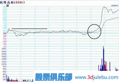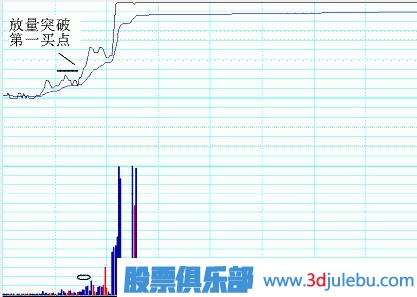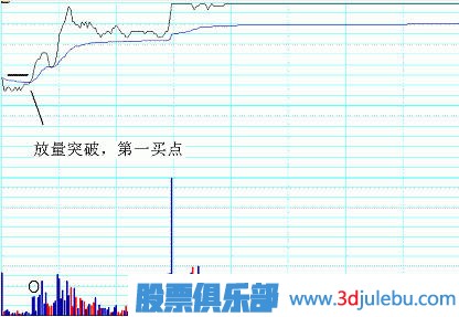 由于在這個(gè)位置股價(jià)往往具有真正意義上的第一次創(chuàng)下盤(pán)中的新高,第一次創(chuàng)下盤(pán)中的最大量能,因此這個(gè)買(mǎi)點(diǎn)把它稱之為:第一買(mǎi)點(diǎn)。第一買(mǎi)點(diǎn)的位置往往是合理的,而且投資者也比較容易從圖中的量?jī)r(jià)變化上找到這個(gè)點(diǎn)位。
