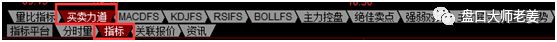 進(jìn)入同花順軟件,在分時圖界面點擊「指標(biāo)」,選擇「買賣力道」。在「買賣力道」中,綠色線表示總賣量的變化趨勢,黃色線表示總買量的變化趨勢。