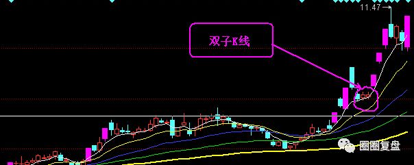 3、在重要均線位置,出現(xiàn)雙子K線(要求均為陽線)