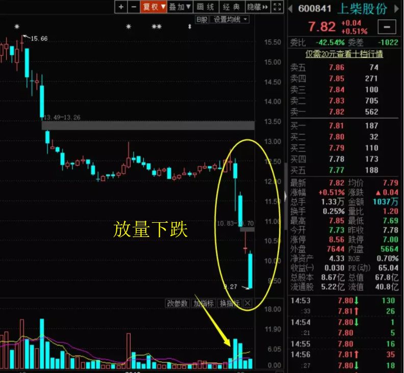 這個票前面就跌過一波,再是走出了一個平臺,接著又是一波放量的大跌。