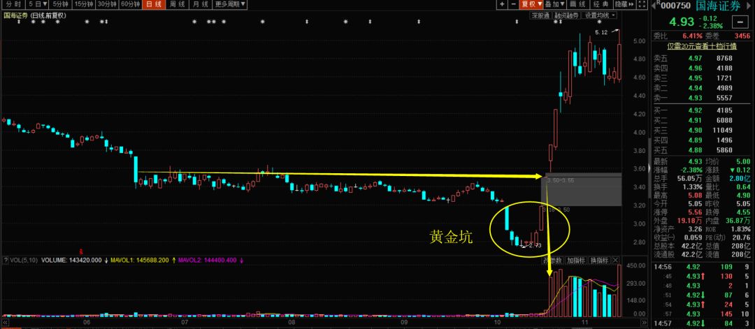 什么叫黃金坑?——莊家為了達(dá)到洗盤的目的而挖的坑。在這個坑里面只要跳進(jìn)去的,全是要發(fā)財?shù)?!