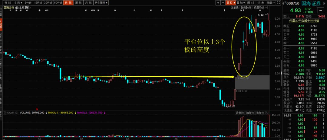看下圖,股價拉回到前期平臺的時候,是不是又是3個板的高度?