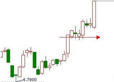 (一)大陽線收盤之上盤整。此種形態(tài)是單陽不破的最強(qiáng)勢(shì)手法。