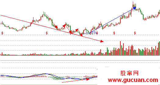 4、指標必須有明顯的背離,價格新低但MACD柱子縮短,柱子翻紅證明強勢;