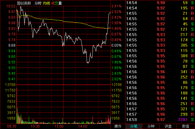6、11月9日修改補(bǔ)充,國(guó)創(chuàng)高新漲停,距離一字漲停回調(diào)后已經(jīng)有10多個(gè)點(diǎn)的漲幅。