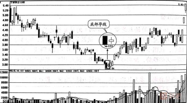 在股價運行處于下跌的走勢之中,一旦出現(xiàn)底部孕線的K線組合,就預示著此時空方的下跌動能已經(jīng)出現(xiàn)了衰竭,股價下跌的力度開始轉弱,或者是下跌的走勢出現(xiàn)了短暫的停頓,說明此時股價運行的方向即將發(fā)生改變。