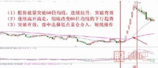 1、突破60日均線時(shí)要有明顯放大的成交量配合,隨后股價(jià)能夠站穩(wěn)于60日均線之上,否則后市可能還有較長時(shí)間反復(fù)。