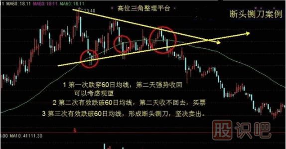 2、第三次的跌破60日均線還跌破三角整理平臺的支持位,所以果斷賣出。